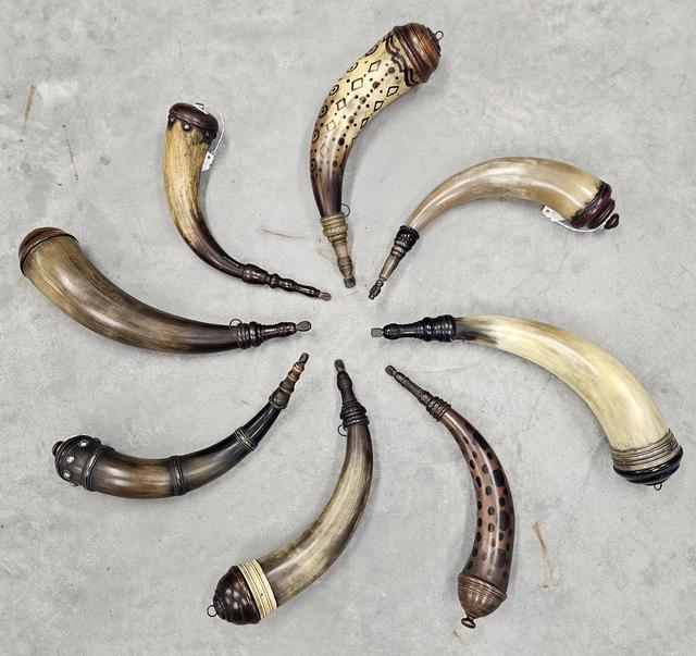 Four just completed Early Philadelphia horns, along with a Berks w/spots, a banded Georgia horn, a Dauphin screw-tip and a Late Philadelphia screw-tip. See the "Items For Sale" tab for available horns.